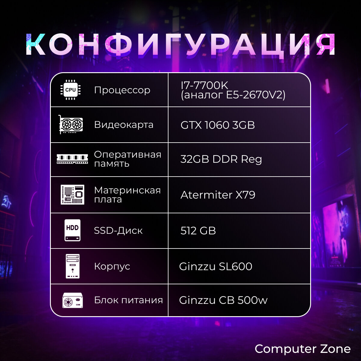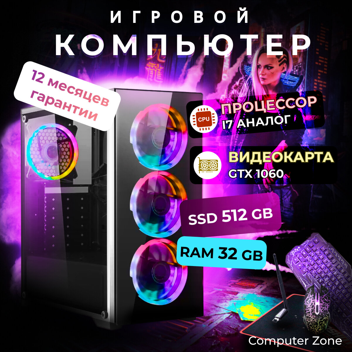 Мощный Игровой компьютер (Intel Core I7 8700T, NVIDIA GeForce GTX 1060, RAM 32 GB, SSD 512 GB, Windows 10 Pro) информация: