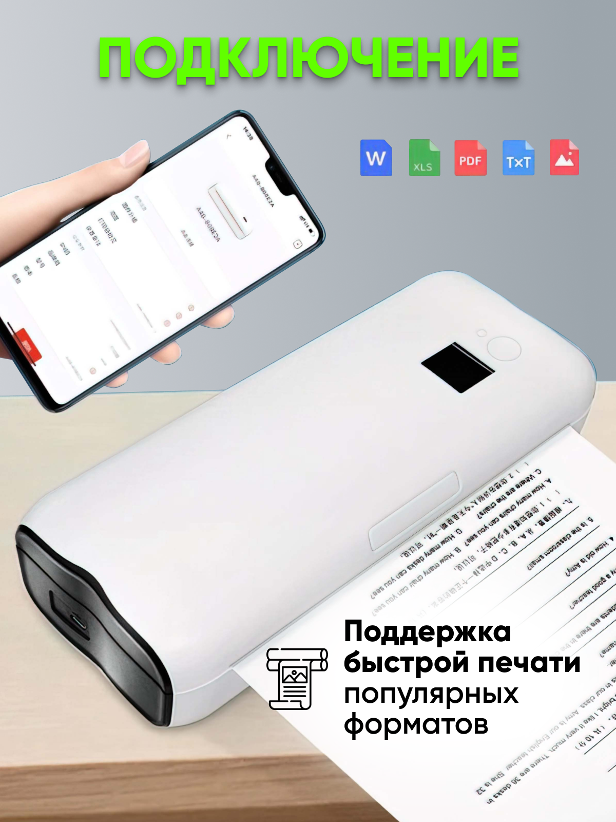 Термопринтер беспроводной, портативный, мини принтер, Bluetooth, Wi-Fi, печать с телефона информация: