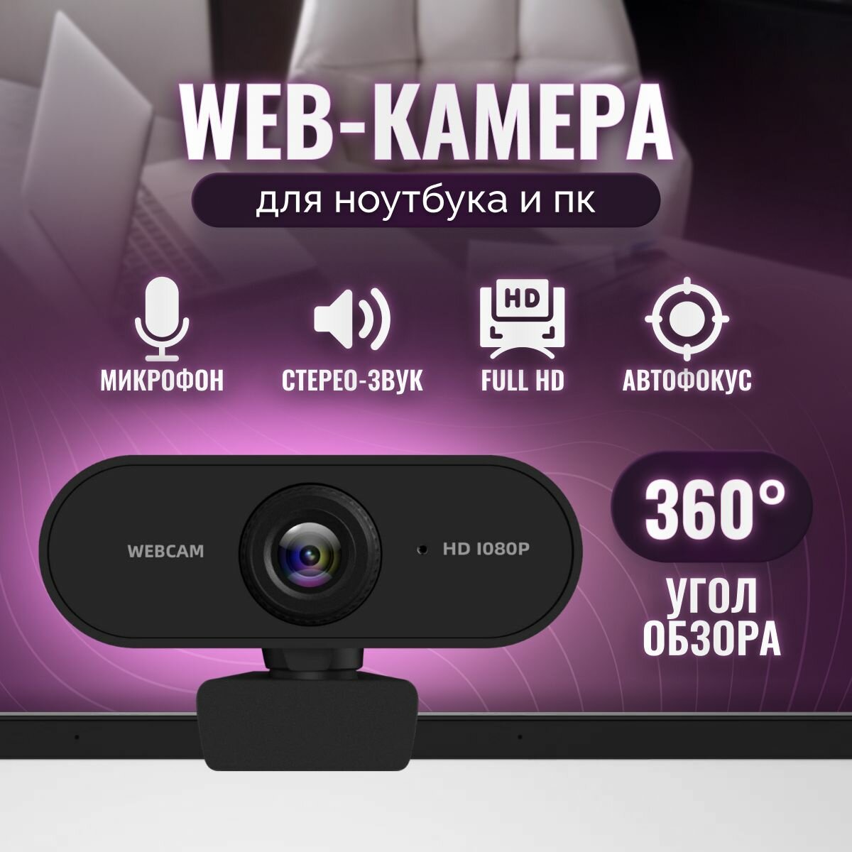 Веб камера с микрофоном; камера для компьютера и ноутбука; FullHD 1080p USB информация: