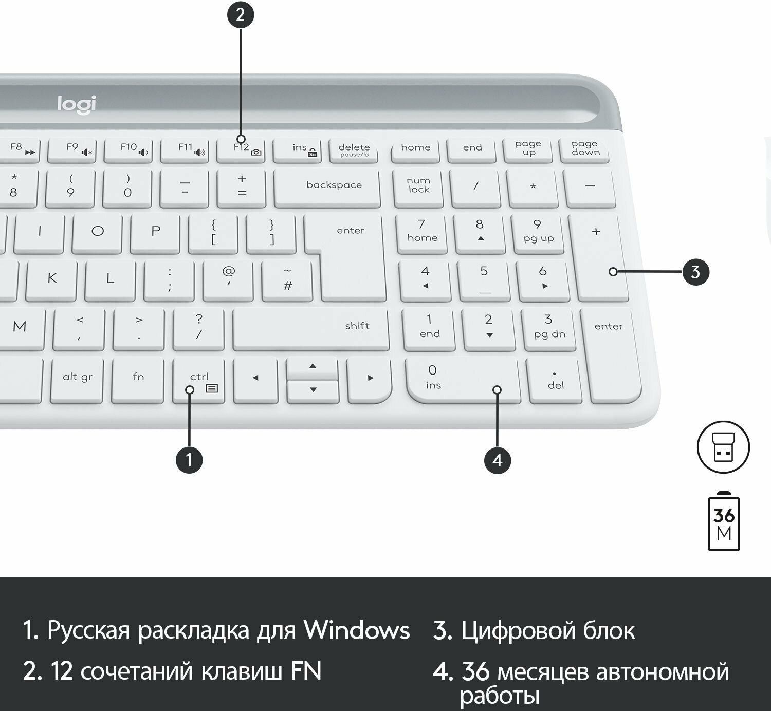 Клавиатура и мышь беспроводные Logitech Slim Combo MK470 белый/серый (920-009207) информация: