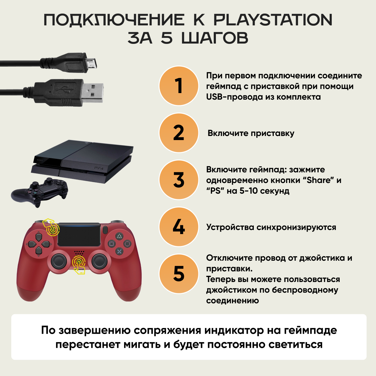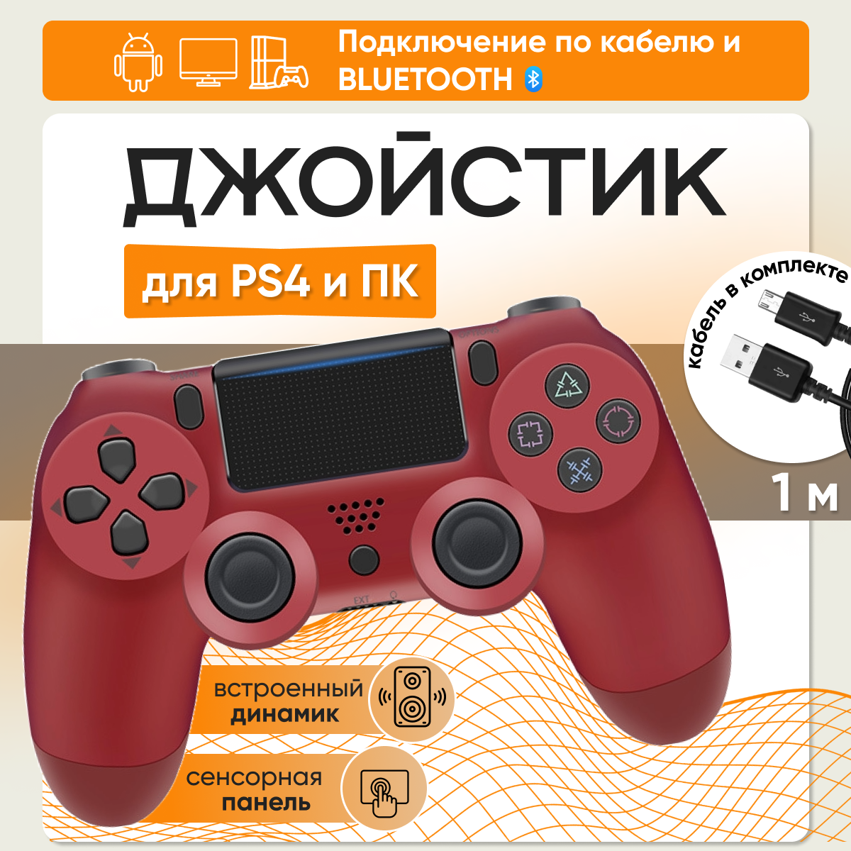 Отзывы на Геймпад для PS4 Красный/ Джойстик контроллер для Playstation 4, PC, Android, iOS + провод 1 метр