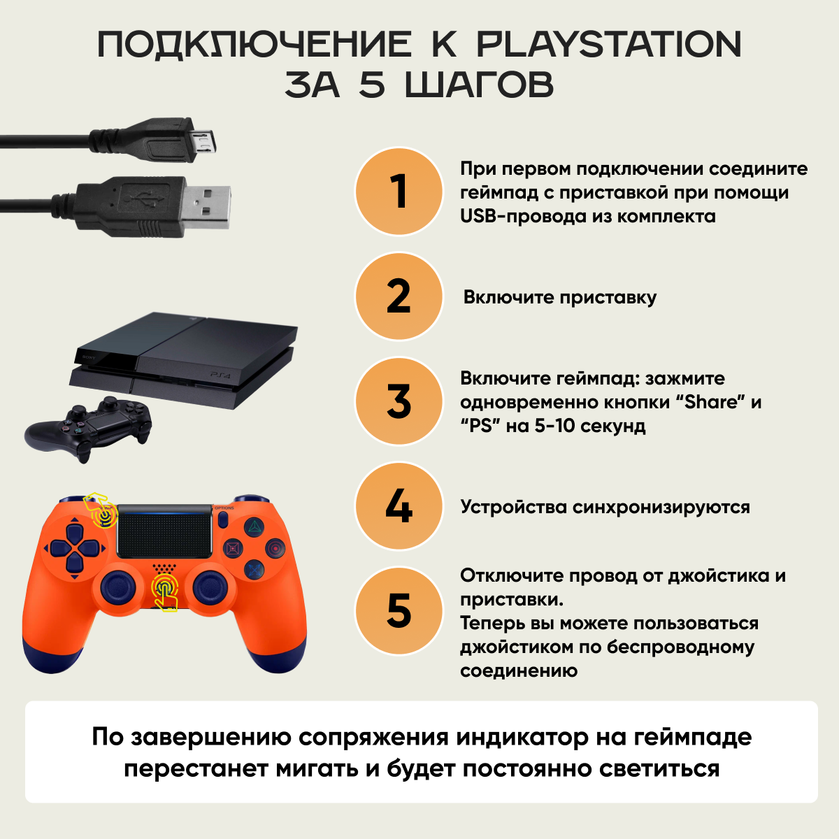 Отзывы на Геймпад для PS4 Оранжевый/ Джойстик контроллер для Playstation 4, PC, Android, iOS + провод 1 метр