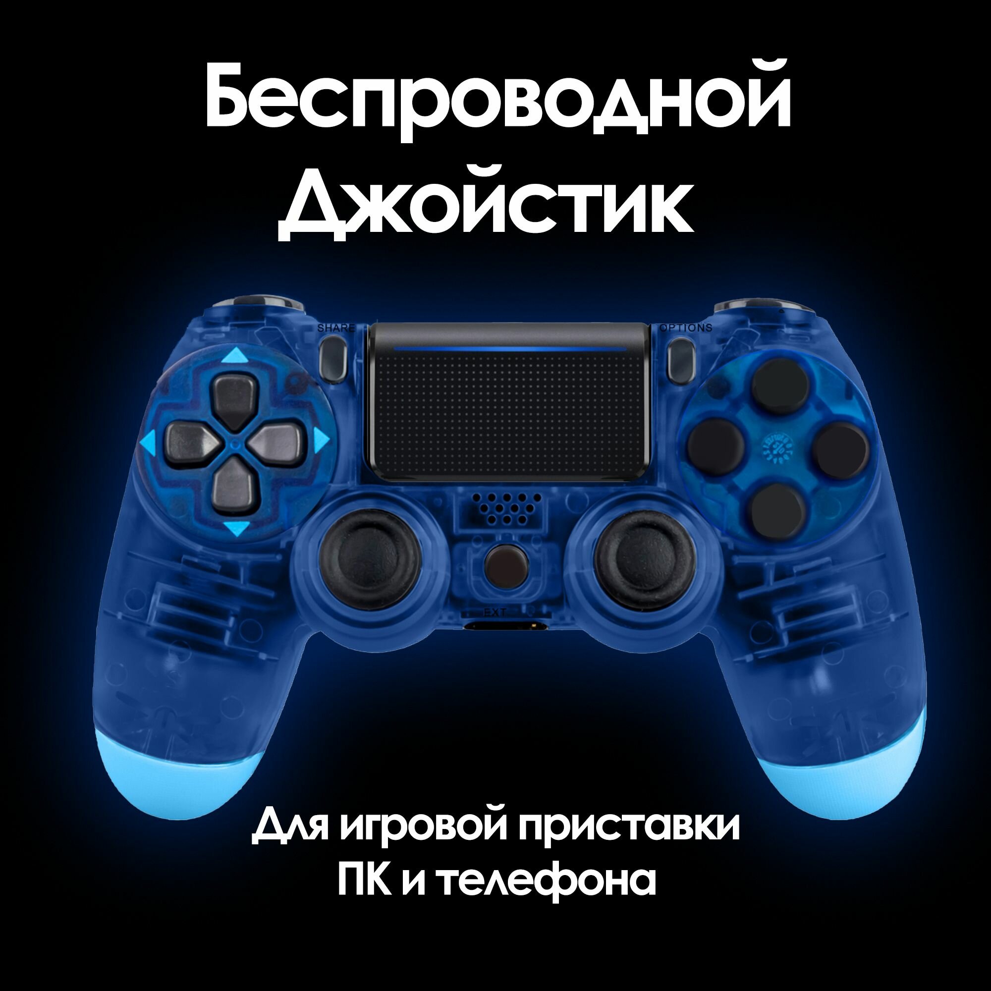 Беспроводной геймпад, прозрачный-синий/джойстик для игровой приставки, смартфона, ПК, PS4./ NO logo информация:
