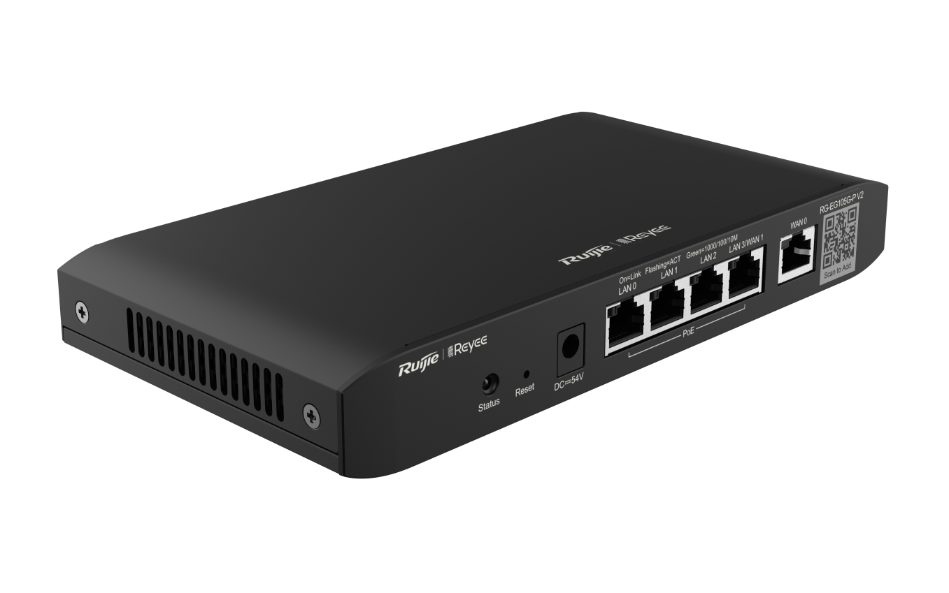 Отзывы на Маршрутизатор Ruijie Reyee RG-EG105G-P V2 5-Port Gigabit (4 PoE/POE+ 54W POE budget, 2 WANs, 100 users, 600Mbps)