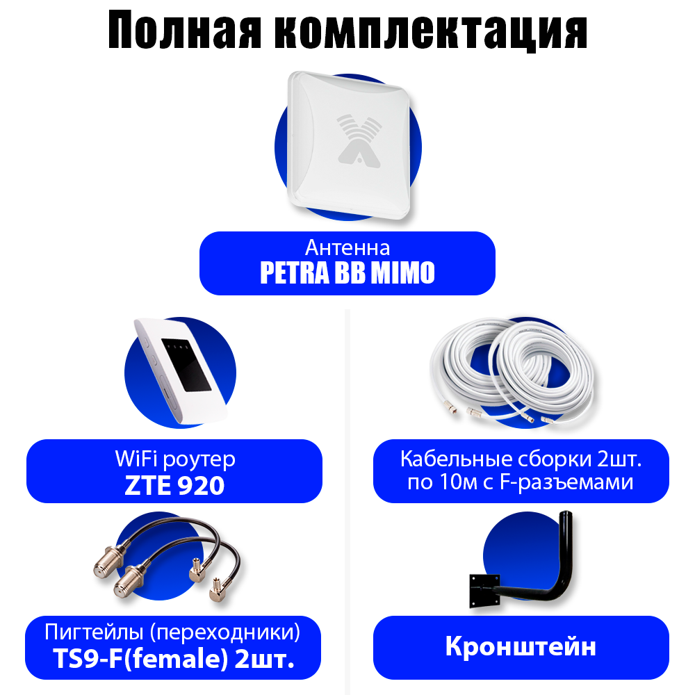 Комплект Интернета Антэкс Petra BB 75 LTE MiMO Антенна + WiFi Роутер ZTE 920U подходит Любой Безлимитный Интернет Тариф и Любая Сим карта информация: