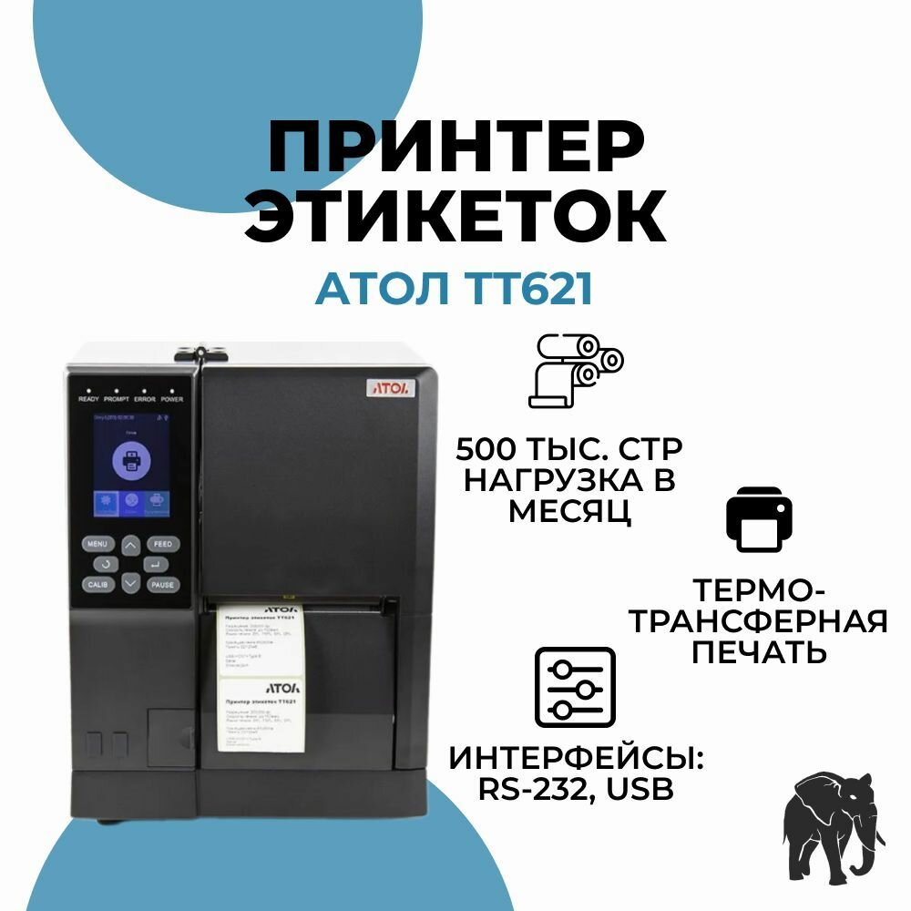 Принтер этикеток АТОЛ TT621 термотрансферная печать, 203 dpi информация: