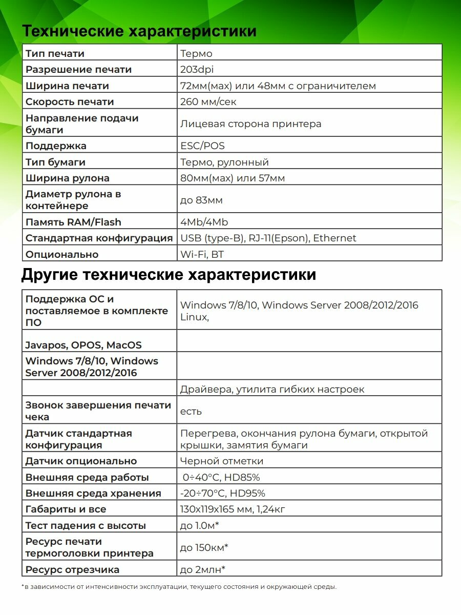 | Дополнительная информация | Эмуляции - ESC/POS |