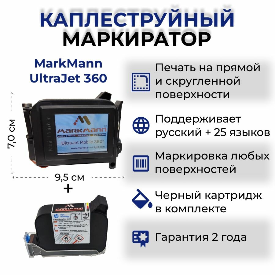Каплеструйный маркиратор MarkMann UltraJet 360 12.7 (черный)/ датировщик автоматический ручной информация: