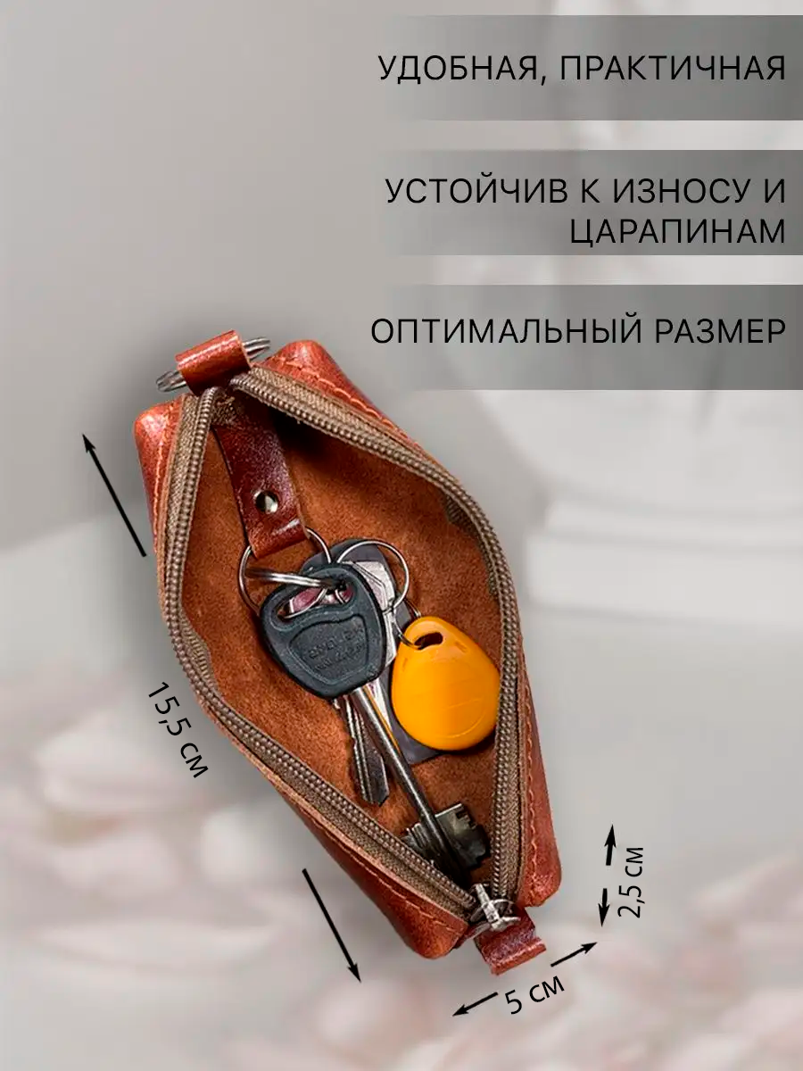 Ключница из натуральной кожи, футляр для ключей пулл-ап коричневый информация:
