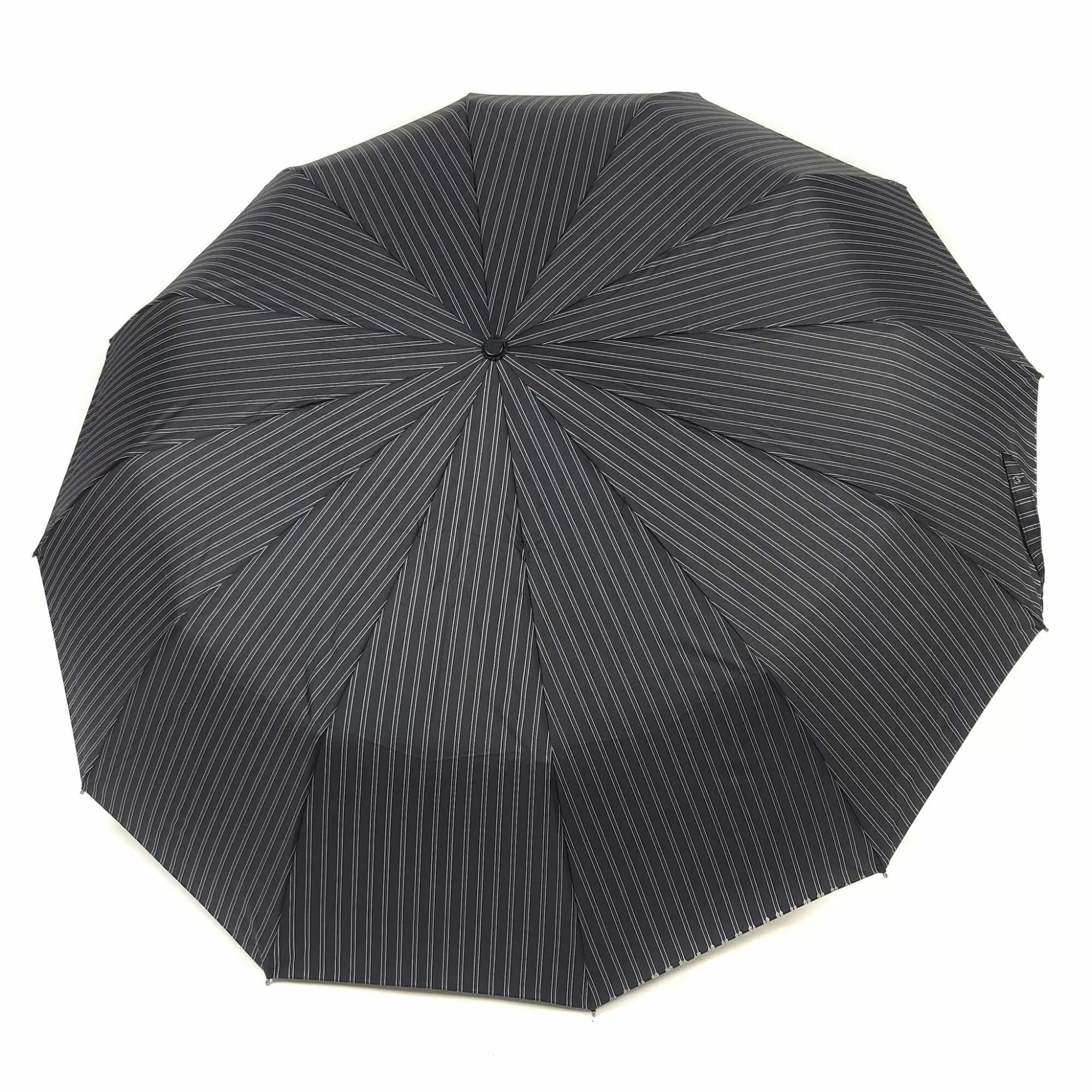 Зонт "Три Слона" мужской № 7121-4, радиус купола 70 см (D=124 см), 12 спиц, черный в полоску, ручка прямая пластик информация: