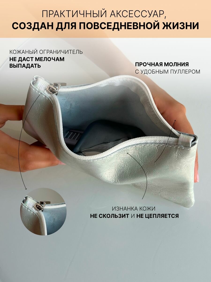 Отзывы на Косметичка натуральная кожа на молнии клатч кожаный , Lamacco , 8856L_Бежевое-серебро