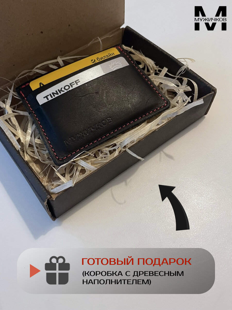 Отзывы на Картхолдер двухсторонний Мужичков из натуральной кожи, черный с красной прострочкой