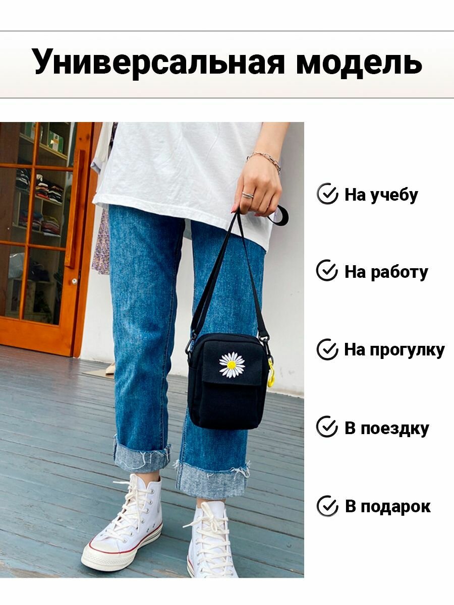 Сумка женская маленькая на плечо, шоппер, модный аксессуар, сумочка кросс боди женская, детская, для девочки с ромашкой информация: