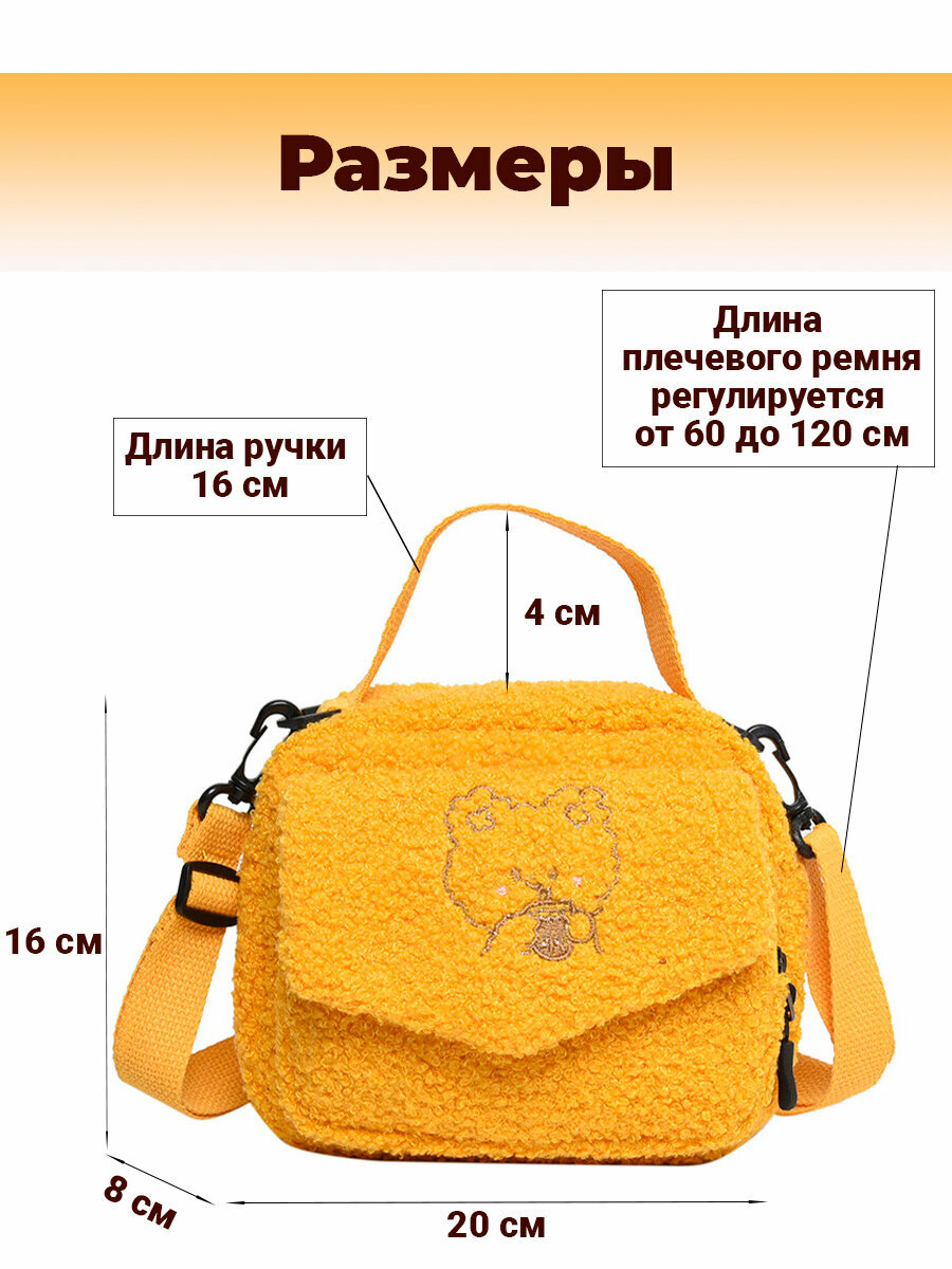 Отзывы на Сумка плюшевая маленькая с мишкой на плечо тканевая кросс-боди, цвет желтый