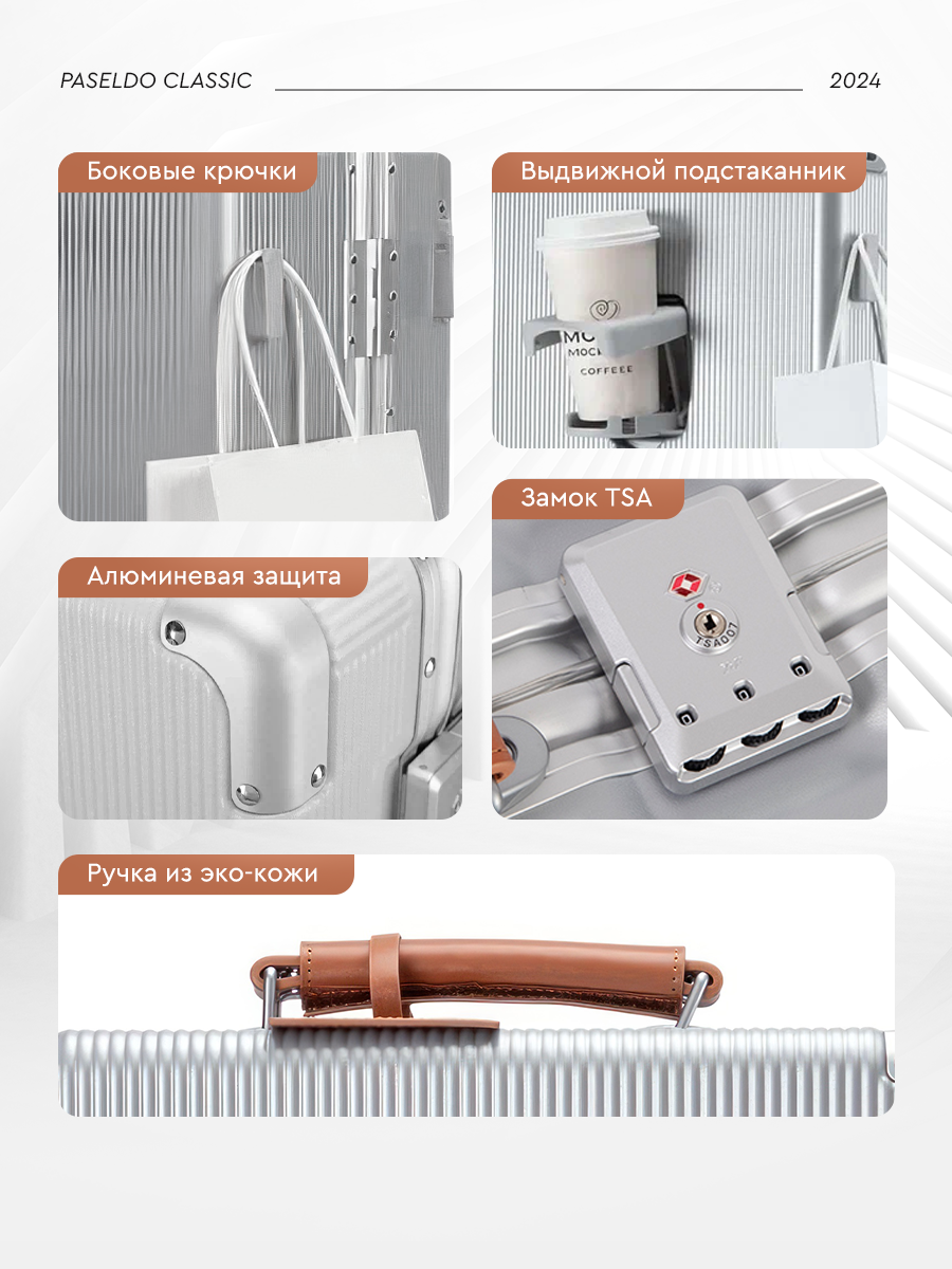 Отзывы на Чемодан Paseldо, 20 дюйма, 33 L, размер S, серебряный, ручная кладь с широкой ручкой