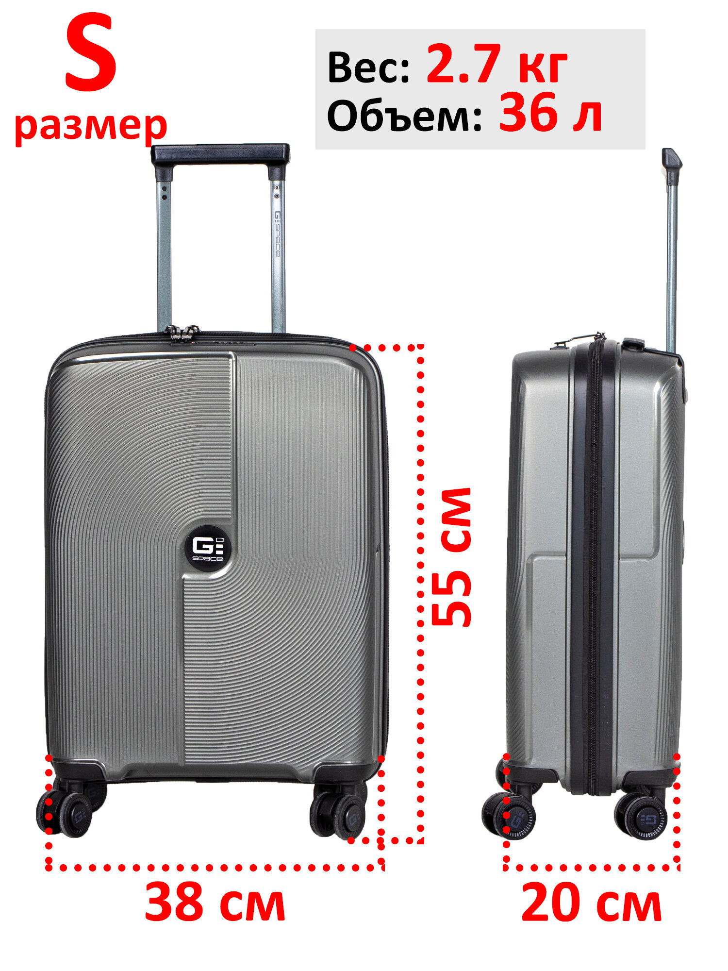Маленький чемодан на колесиках GSPACE, объем 36 литров, цвет темно-серый информация: