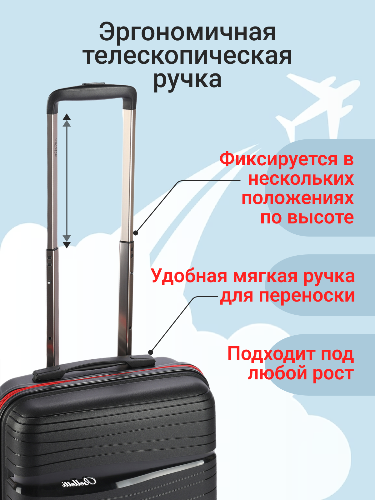Чемодан на колесах BELLETTI 3052-56см (черный/красный) S, ручная кладь информация: