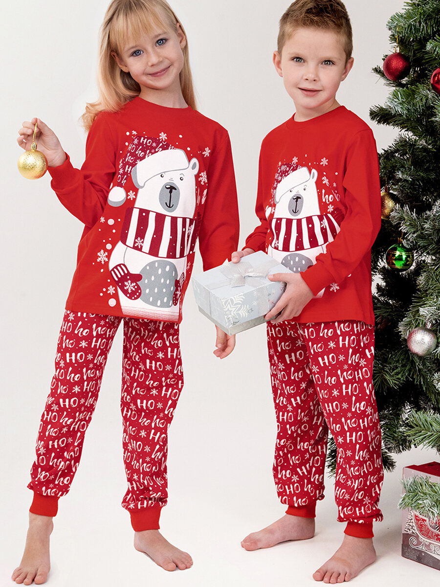 10 цен на Пижама с брюками детская новогодняя HappyFox. HFLUNNG836 размер 104. цвет красный