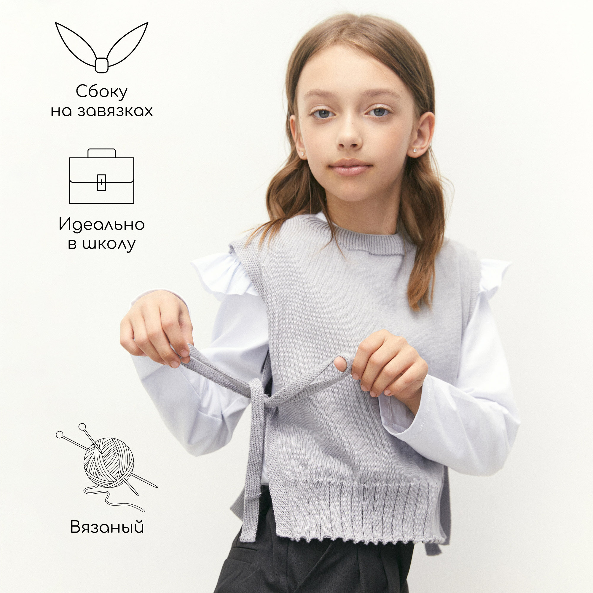 Жилет вязаный детский Amarobaby BOW, цвет белый, размер 146 1 980 ₽