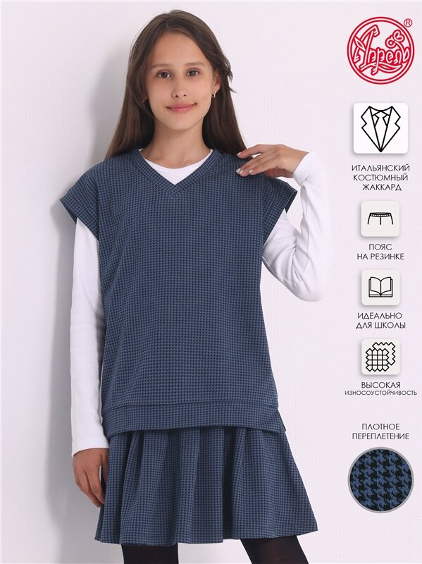 Костюм для девочки школьный юбка и жилет жаккард Апрель 2ДЖЮ5707176/989/*/5303/*/*/*/* черный,синий 64-128 1 917 ₽