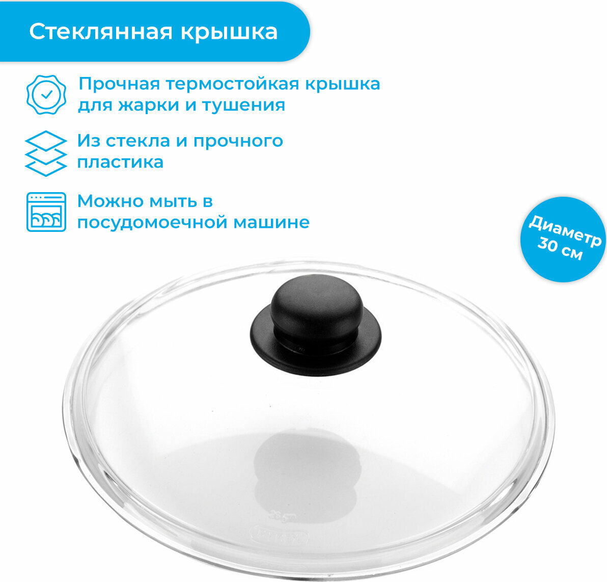 Стеклянная крышка Pomi d'Oro RUS-540005, крышка для сковороды, крышка 28 см, кухонная крышка, крышка для посуды