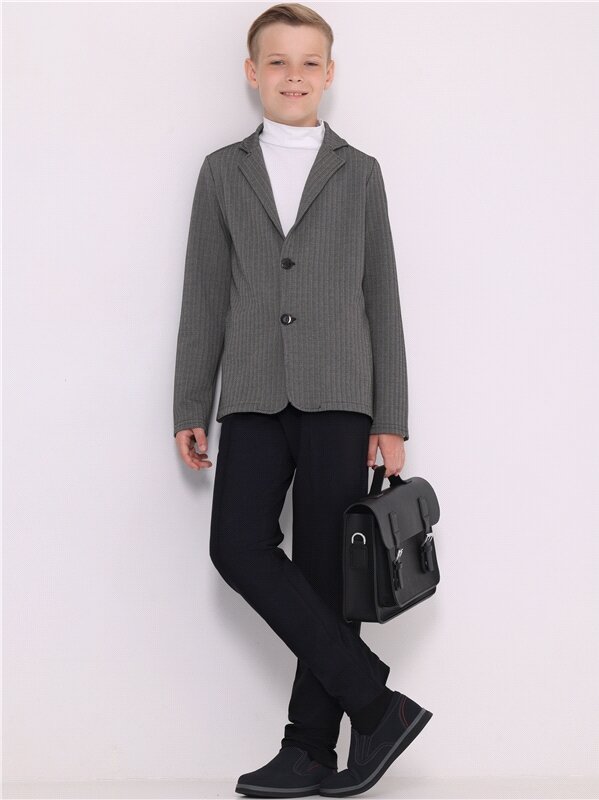 10 цен на Пиджак для мальчика школьный трикотажный Апрель 1ПДИД4483176/982/*/3189/*/*/*/* черный,серый 80-152