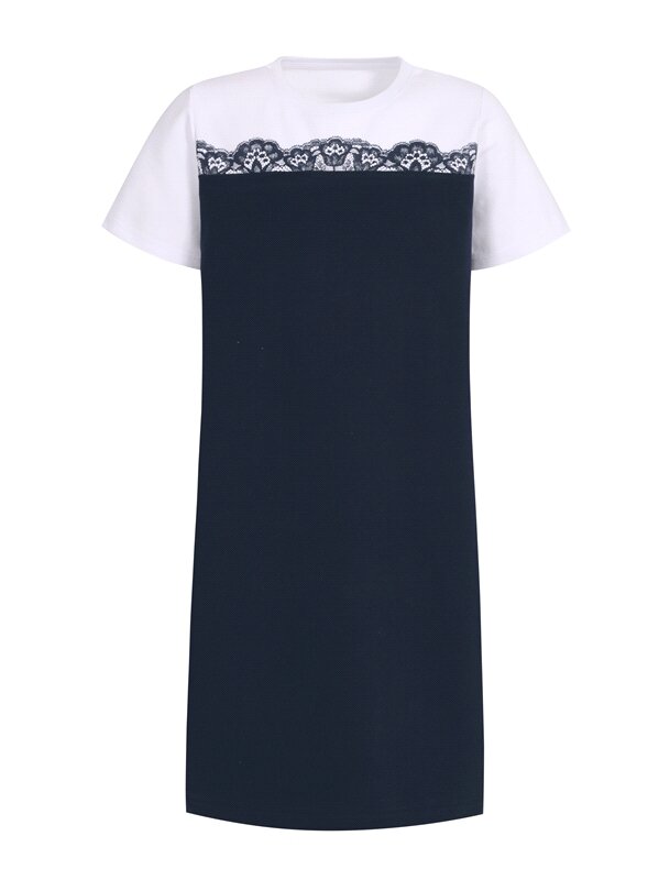 Платье для девочки школьное трикотажное рисунок кружево Апрель 1ДПК1401258/989/2130/*/2049/*/*/*/2 синий,белый 62-122 информация:
