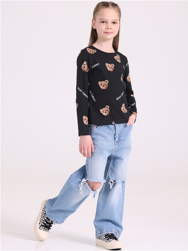 Лонгслив для девочки с принтом кофта хлопок 100% Апрель 1ДДЛД4414001н/1119/*/5217/*/*/*/* черный,коричневый 84-158 561 ₽