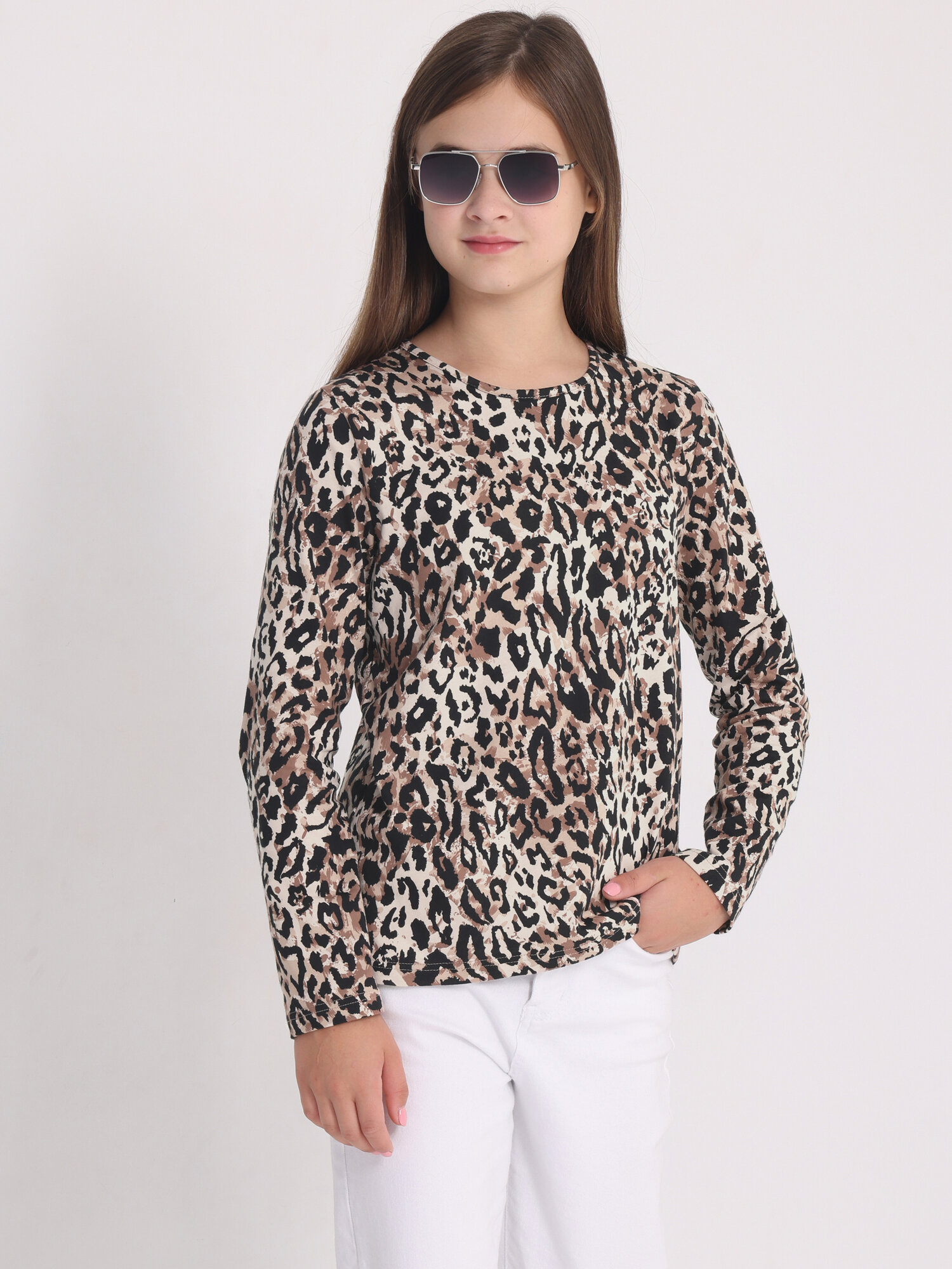 Лонгслив для девочки с леопардовым принтом хлопок 100% Апрель 1ДДЛД4414001н/1119/*/5265/*/*/*/* черный,коричневый 88-164 информация: