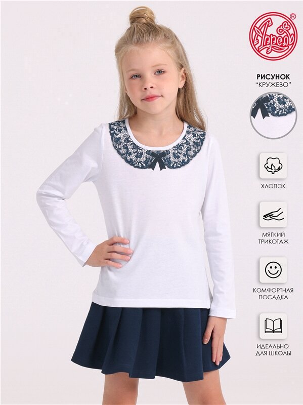 Отзывы на Лонгслив для девочки школьный принт-воротник хлопок 100% Апрель 1ДДЛД2535001/989/31/*/2236/*/*/* белый синий 76-146
