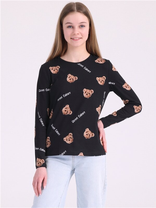 Лонгслив для девочки с принтом кофта хлопок 100% Апрель 1ДДЛД4414001н/1119/*/5217/*/*/*/* черный,коричневый 88-164 информация: