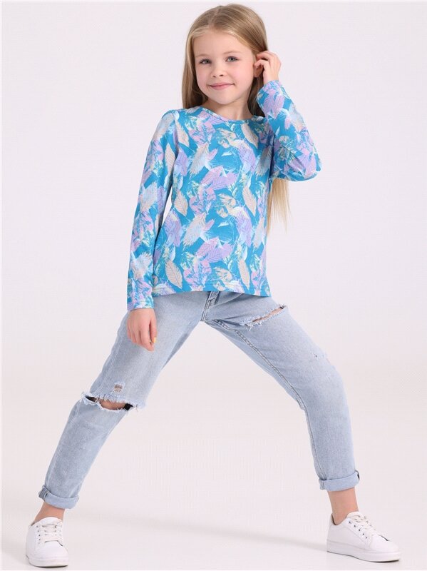 Лонгслив для девочки с принтом кофта хлопок 100% Апрель 1ДДЛД4192001/1119/2419/*/2982/*/*/* голубой,серый,белый 84-158 738 ₽