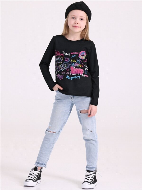Лонгслив с тату-рукавами для девочки Апрель 1ДДЛД4025804н/1436/*/4930/*/*/*/* черный 76-146 881 ₽