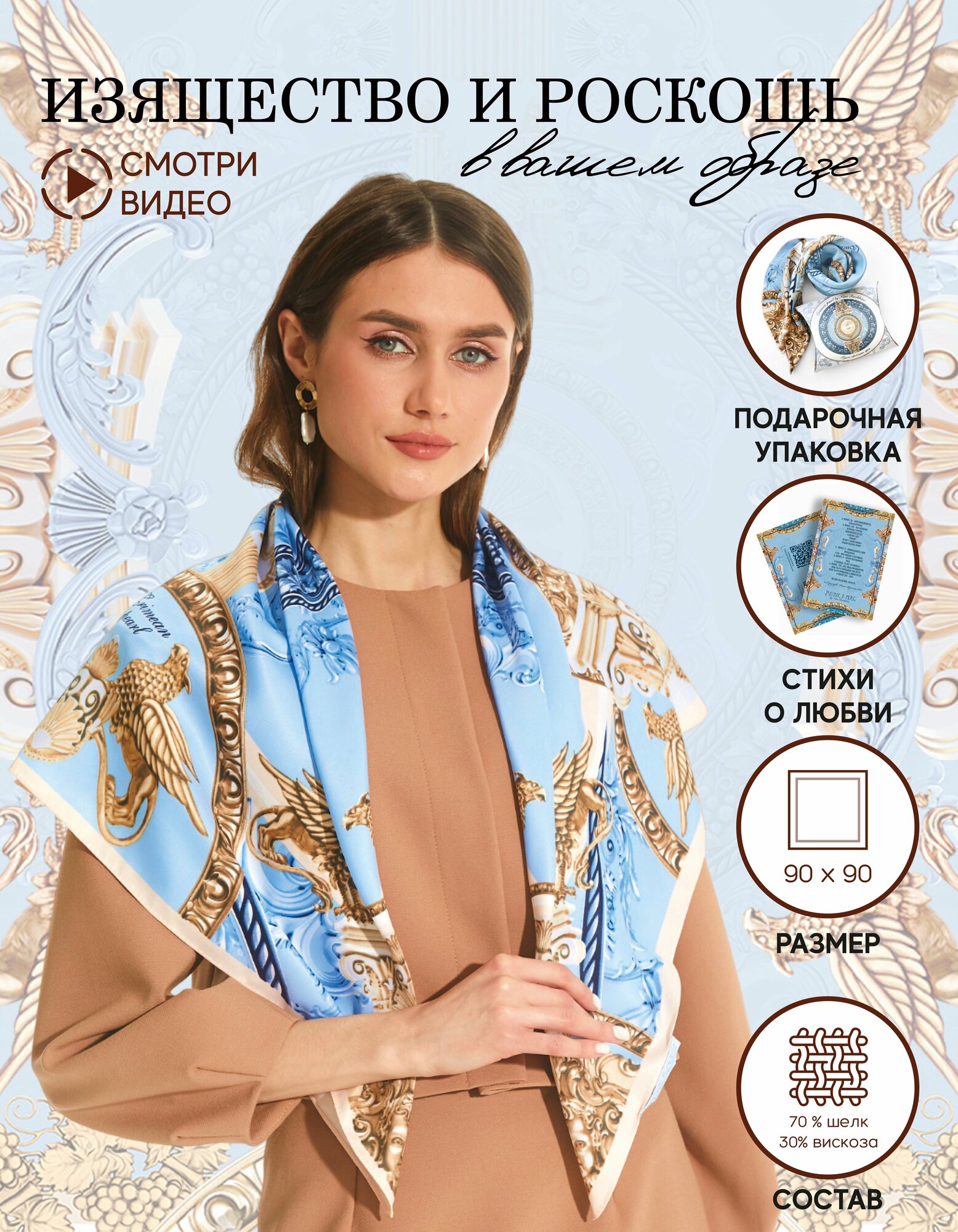 10 цен на Платок Русские в моде Жемчужина Крыма 90х90 70%Шёлк 30%Вискоза