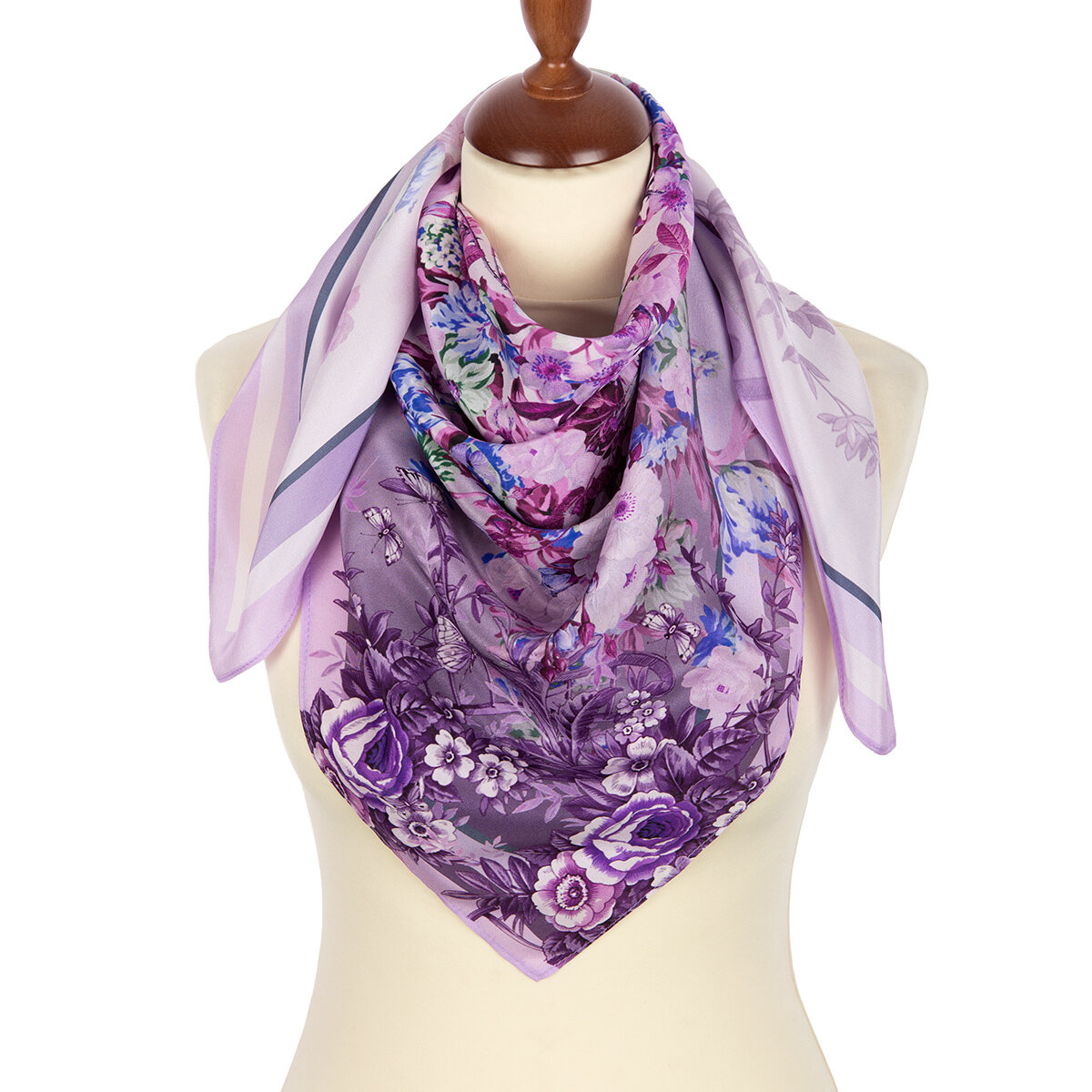 Отзывы на Платок на голову женский шелковый Павловопосадские платки 10092 Винтаж 4, сиреневый, 89 х 89 см