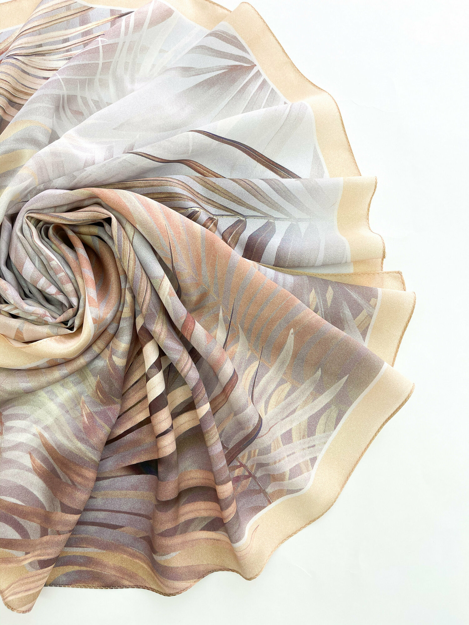 Отзывы на Платок на голову женский шелковый Павловопосадский платок 11122 вид 2, бежевый, 89 х 89 см