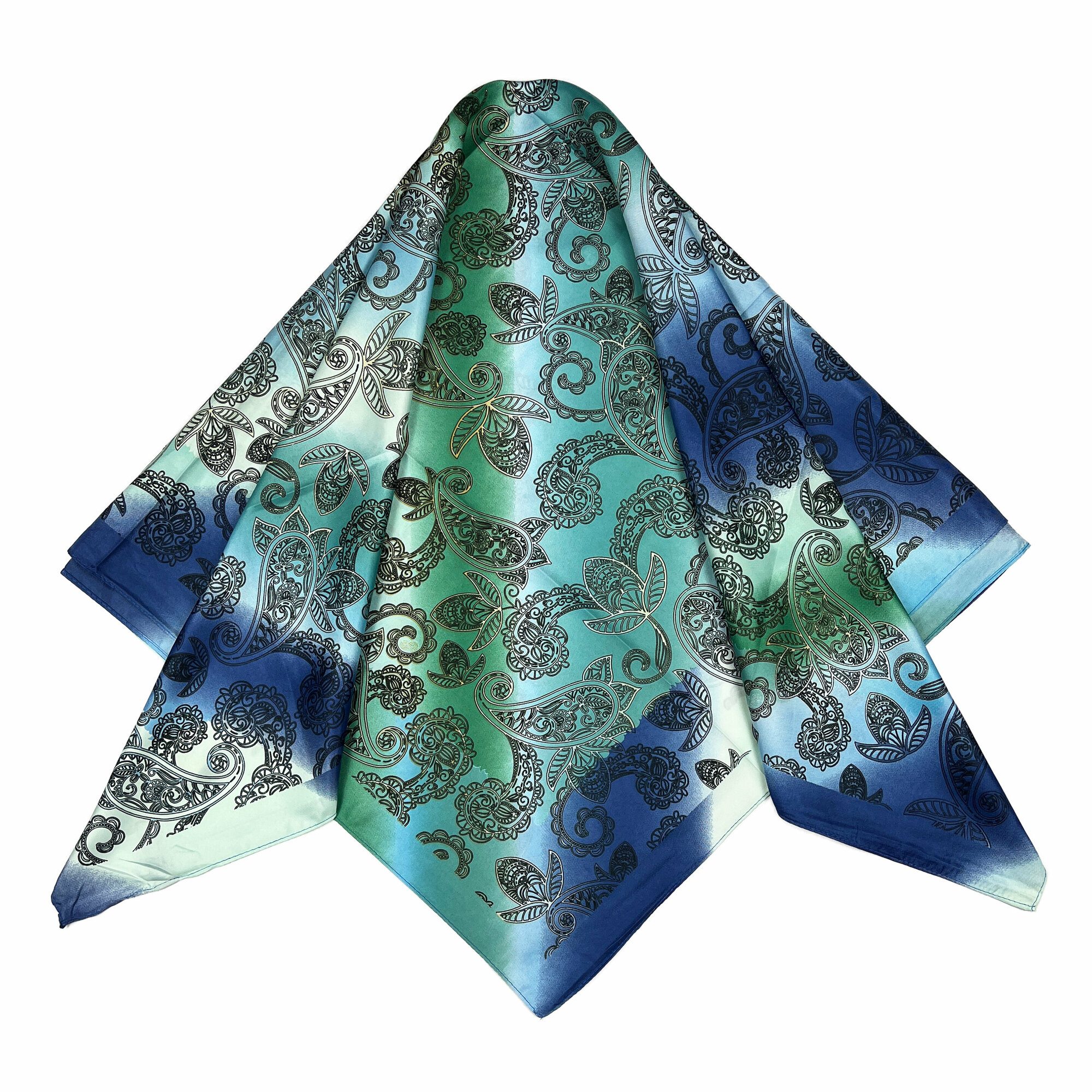 10 цен на Шелковый платок градиентной расцветки, с принтом "огурцы", весенний платок, новинка 2024г, синий / зеленый