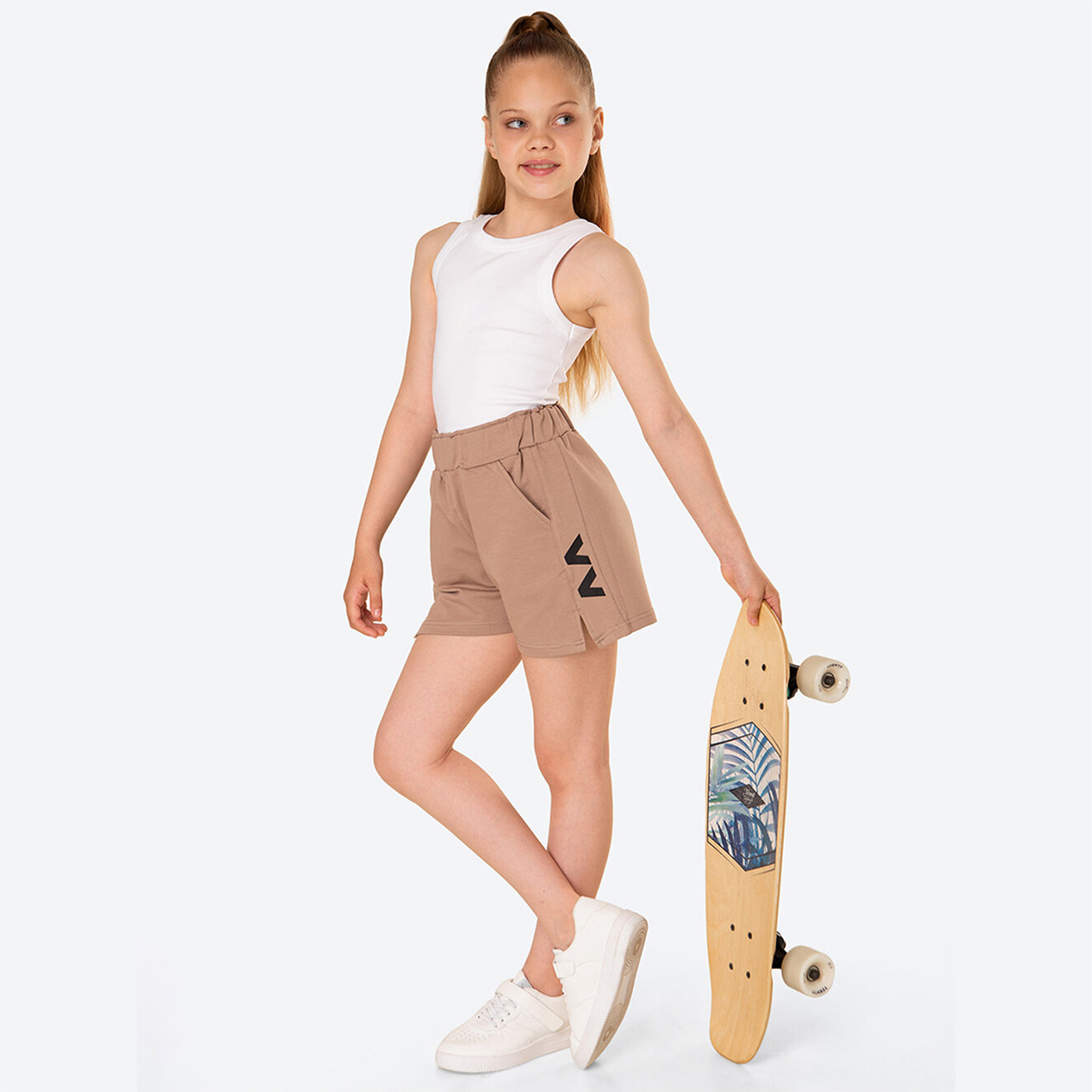 Спортивные шорты для девочки подростка детские летние HappyFox, HFJKAS110 размер 146, цвет капучино информация: