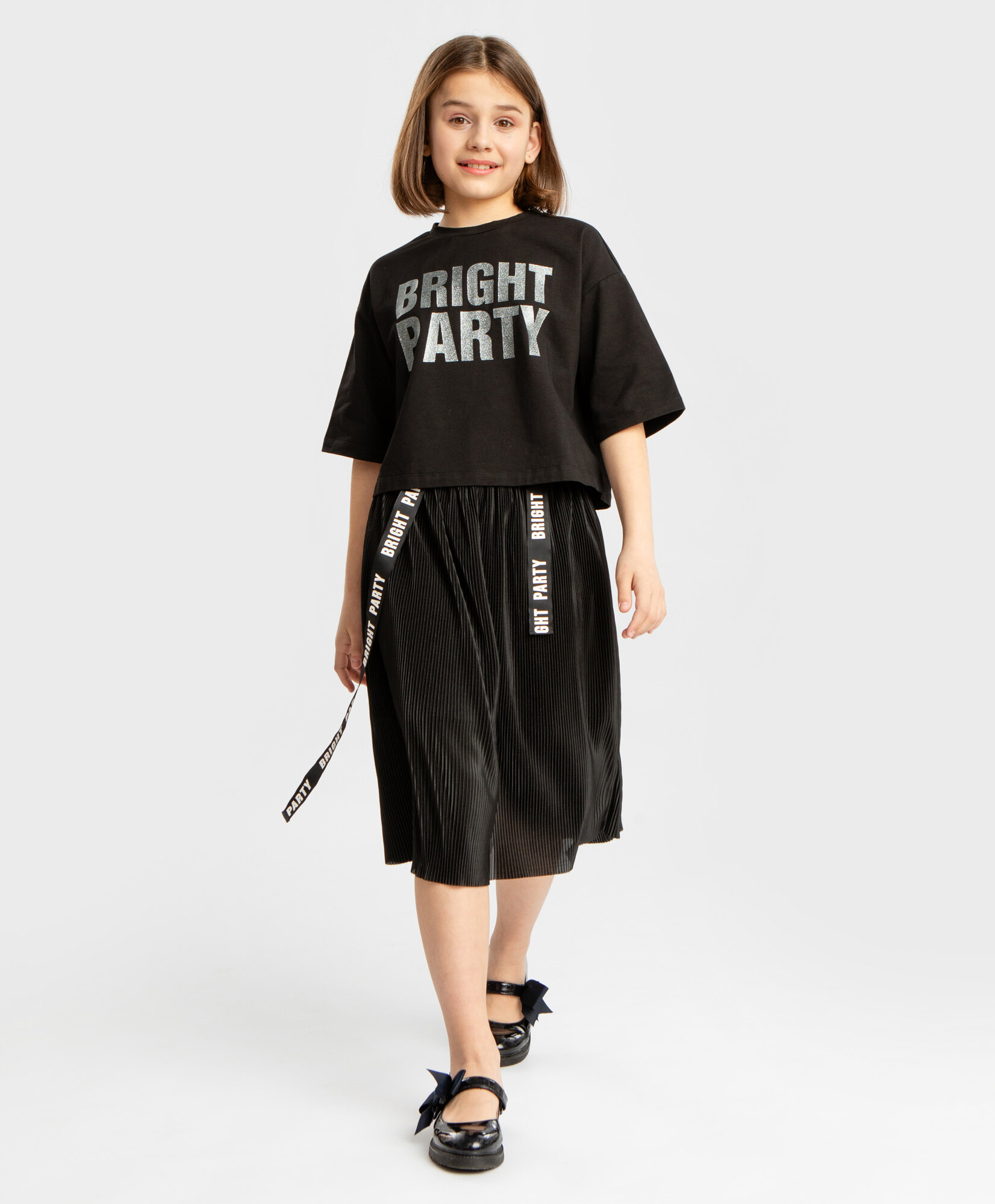 Юбка ниже колена с плиссировкой и поясом на резинке черная для девочки Button Blue, р.146, мод.224BBGP5501 4 199 ₽