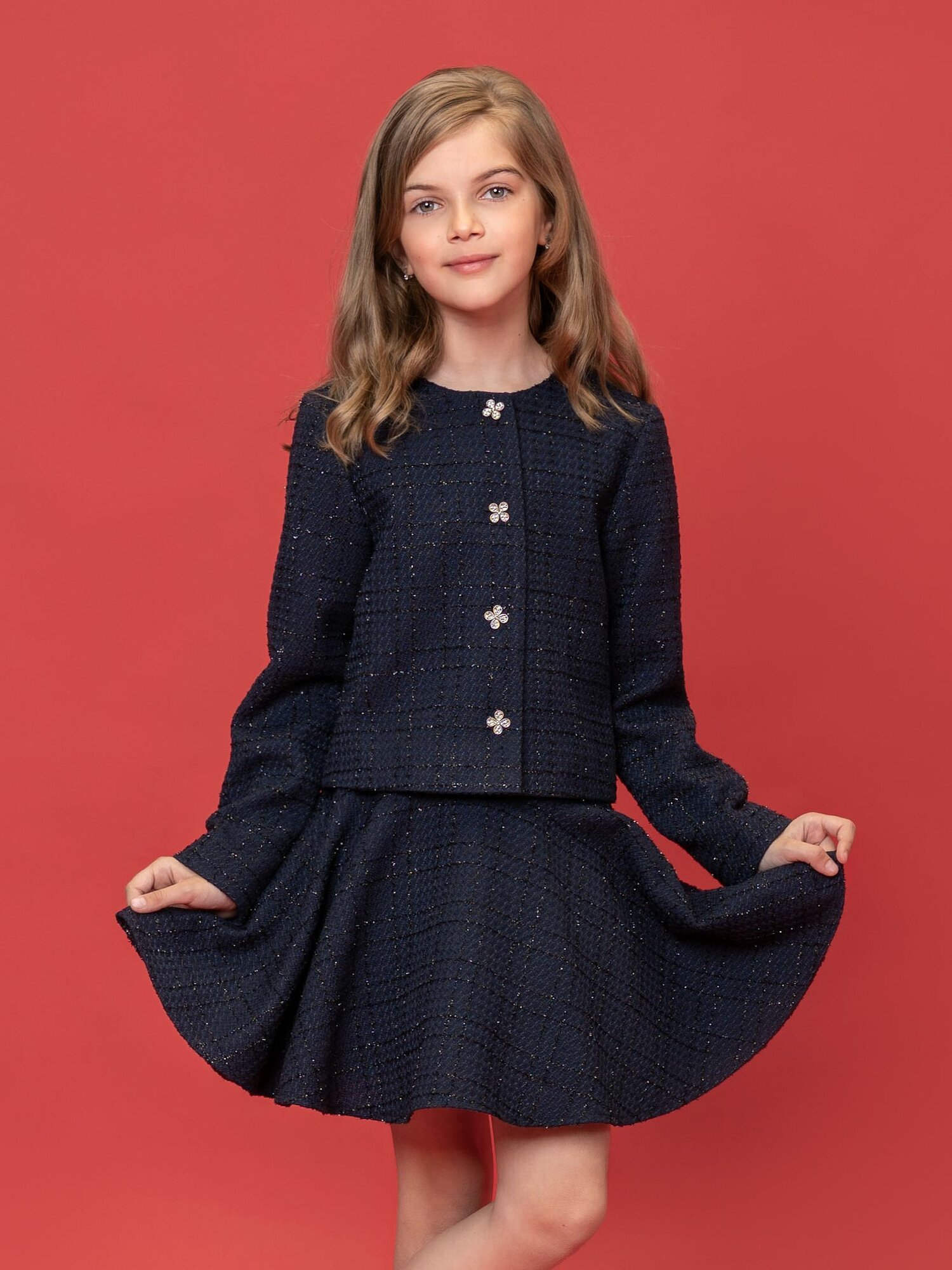 Юбка-солнце из твида 7245018 Синий, размер 140 информация: