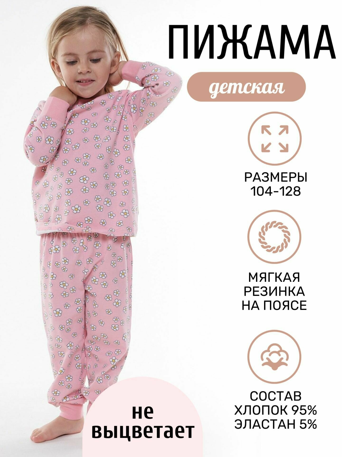 Пижама для девочки розовая детская, 122-128 со штанами информация: