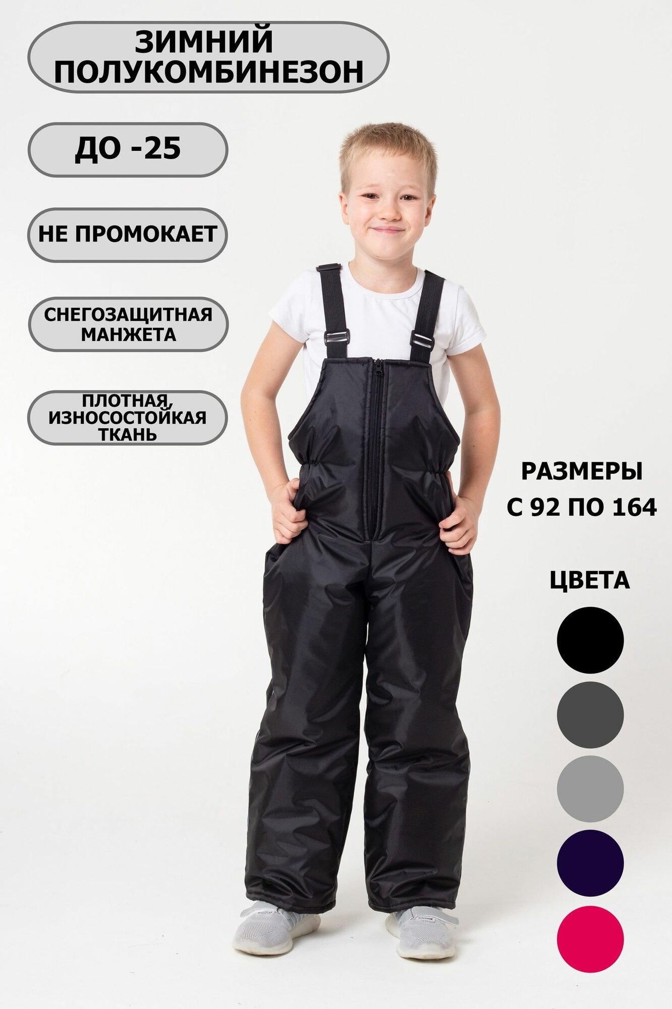 Зимний полукомбинезон для мальчика / для девочки черные 104 информация: