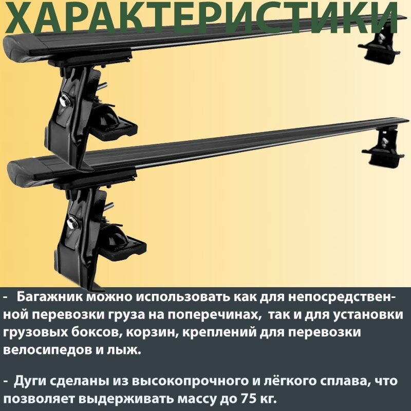 10 цен на Багажник на гладкую крышу для Toyota Yaris_Verso минивен 1999-2006. Крепления за проем двери упоры D-1 с крыловидными дугами черные L-130 см