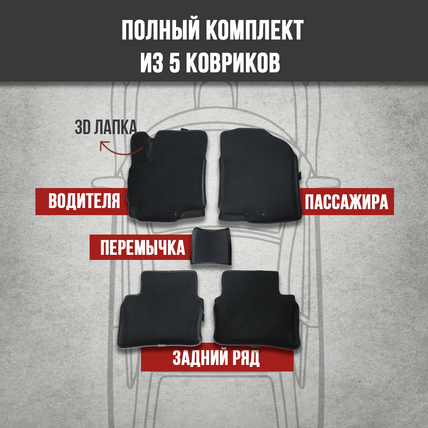 | Дополнительная информация | сделаны по размерам авто, крепления и липучки на ковриках |