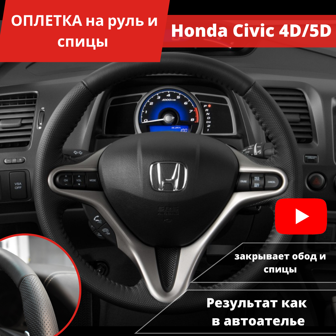 Отзывы на Оплетка на руль Honda Civic 4D(5D) (Хонда Цивик) из экокожи/ Чехол на руль авто Honda Civic 4D из экокожи