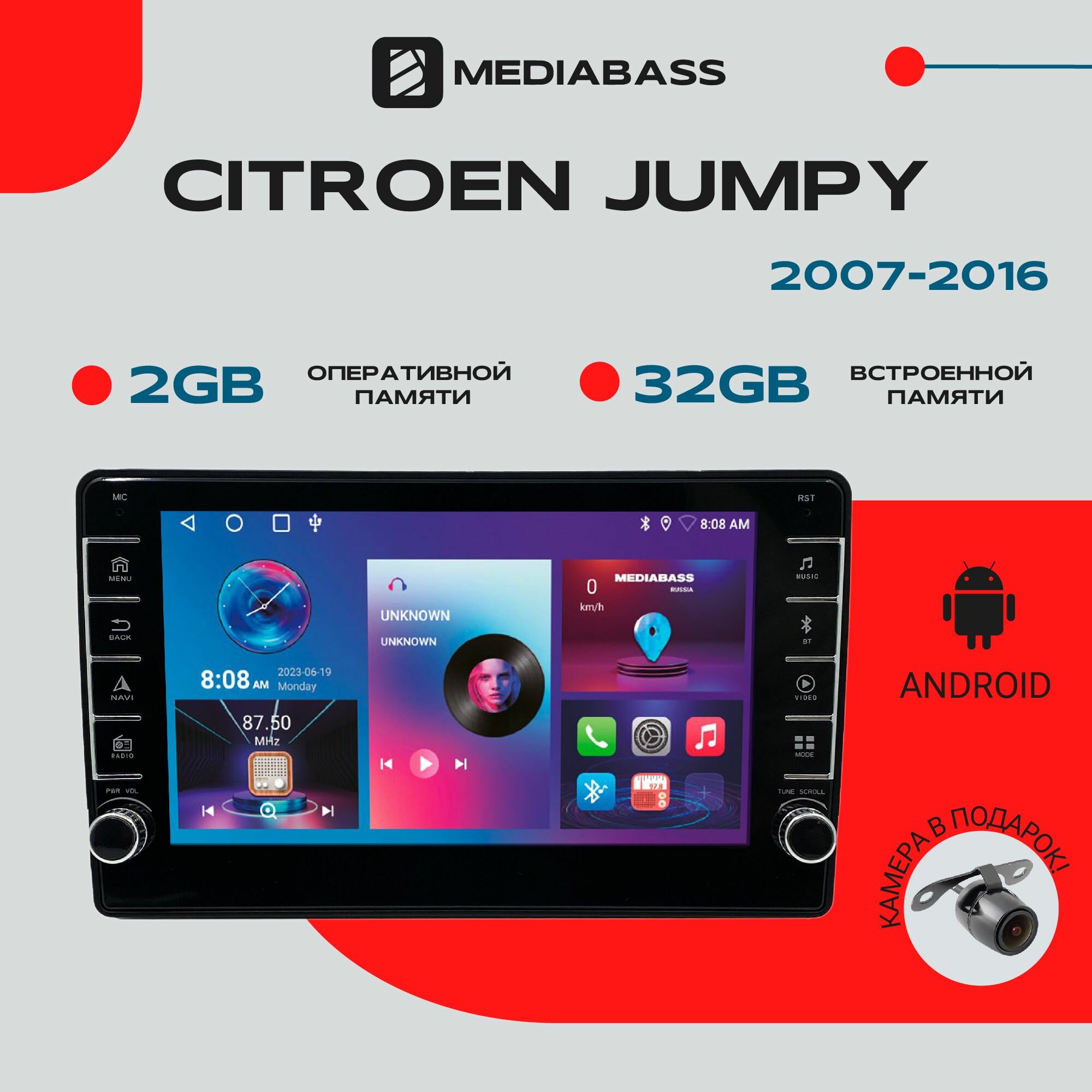 Магнитола Android 13 Citroen Jumpy (2007-2016) , 2/32 ГБ с крутилками / Ситроен Джампи / Мультимедиа + переходная рамка информация: