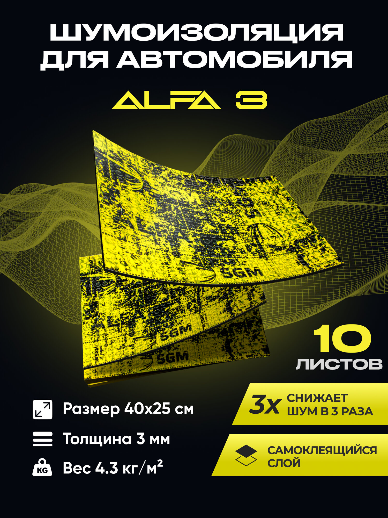 10 цен на Шумоизоляция для автомобиля SGM Альфа 3, 10 листов/Виброизоляция /Комплект звукоизоляции:шумка для авто/вибродемпфер/теплоизоляция капота