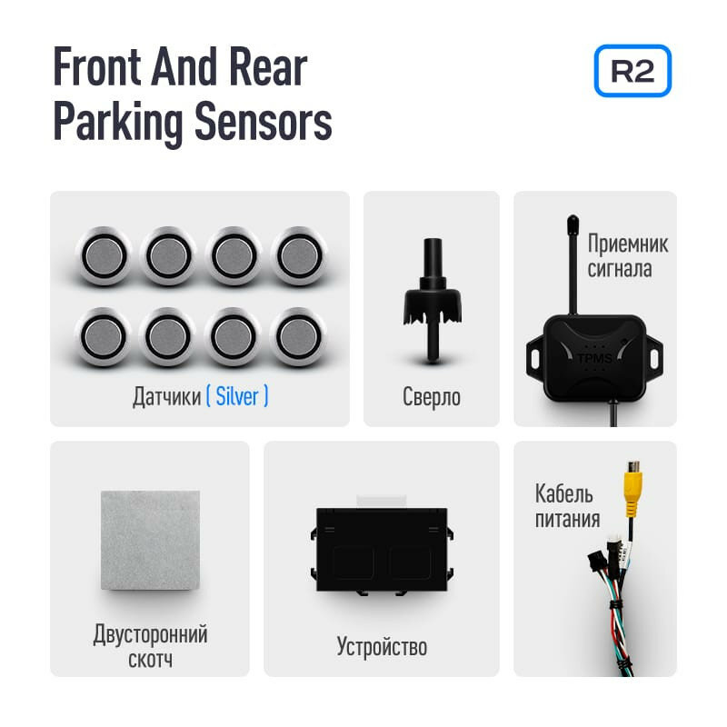 Отзывы на Передние и задние парктроники Teyes R2 для CC3 / CC2 Plus / SPRO Plus / TPRO2 (Серебристые) 8-датчиков