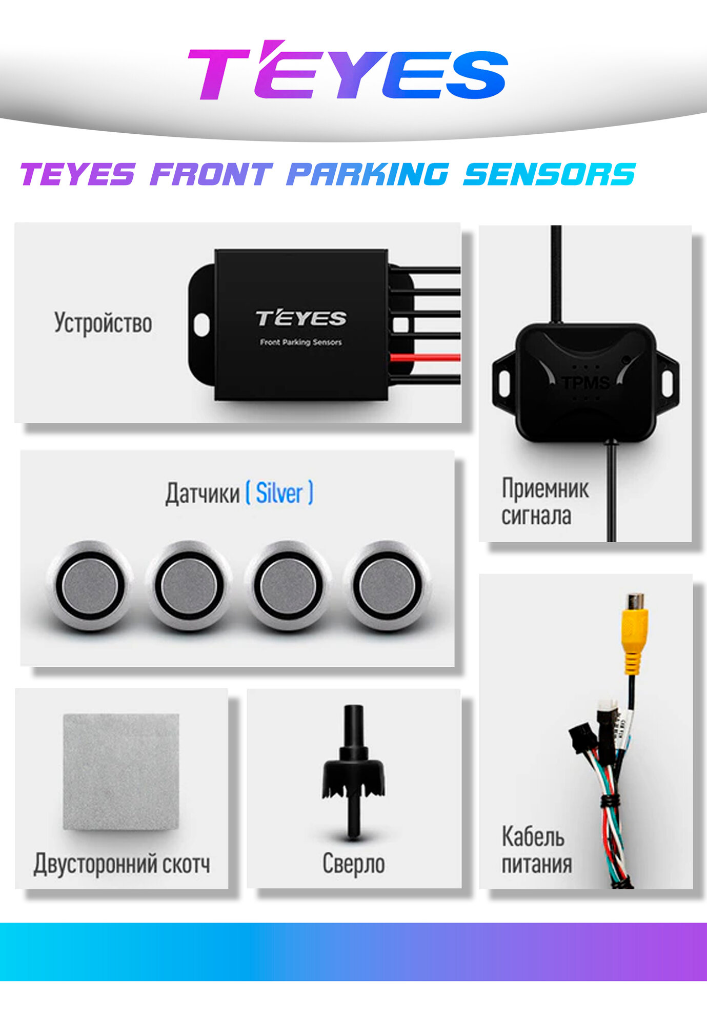 TEYES R2 Передние и задние автомобильные парктроники. Цвет серебристый. информация: