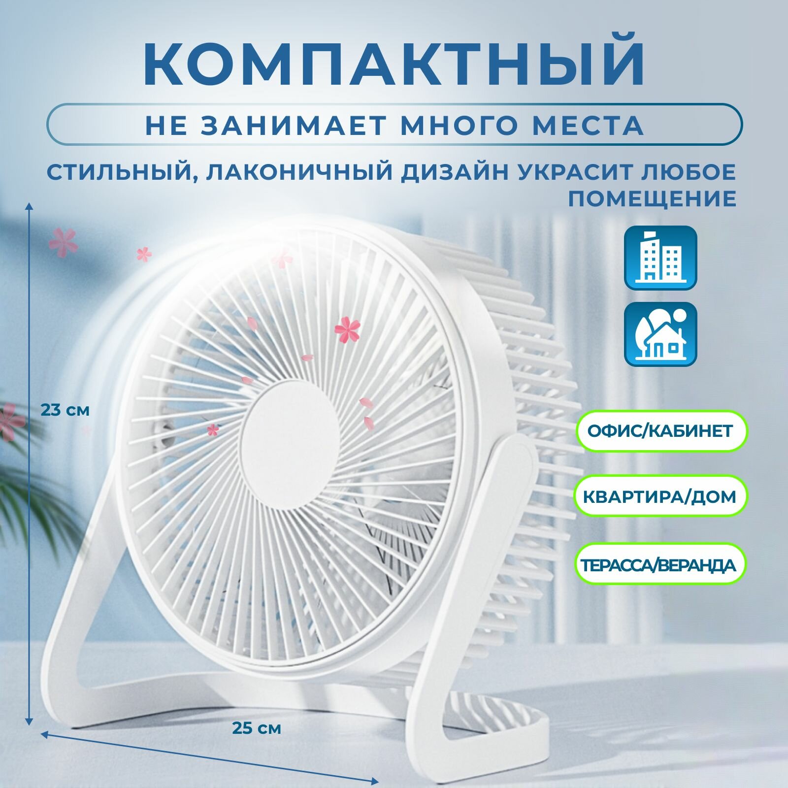 Вентилятор Power bank, складной, портативный, 5 скоростей работы, 3000 мАч, белый